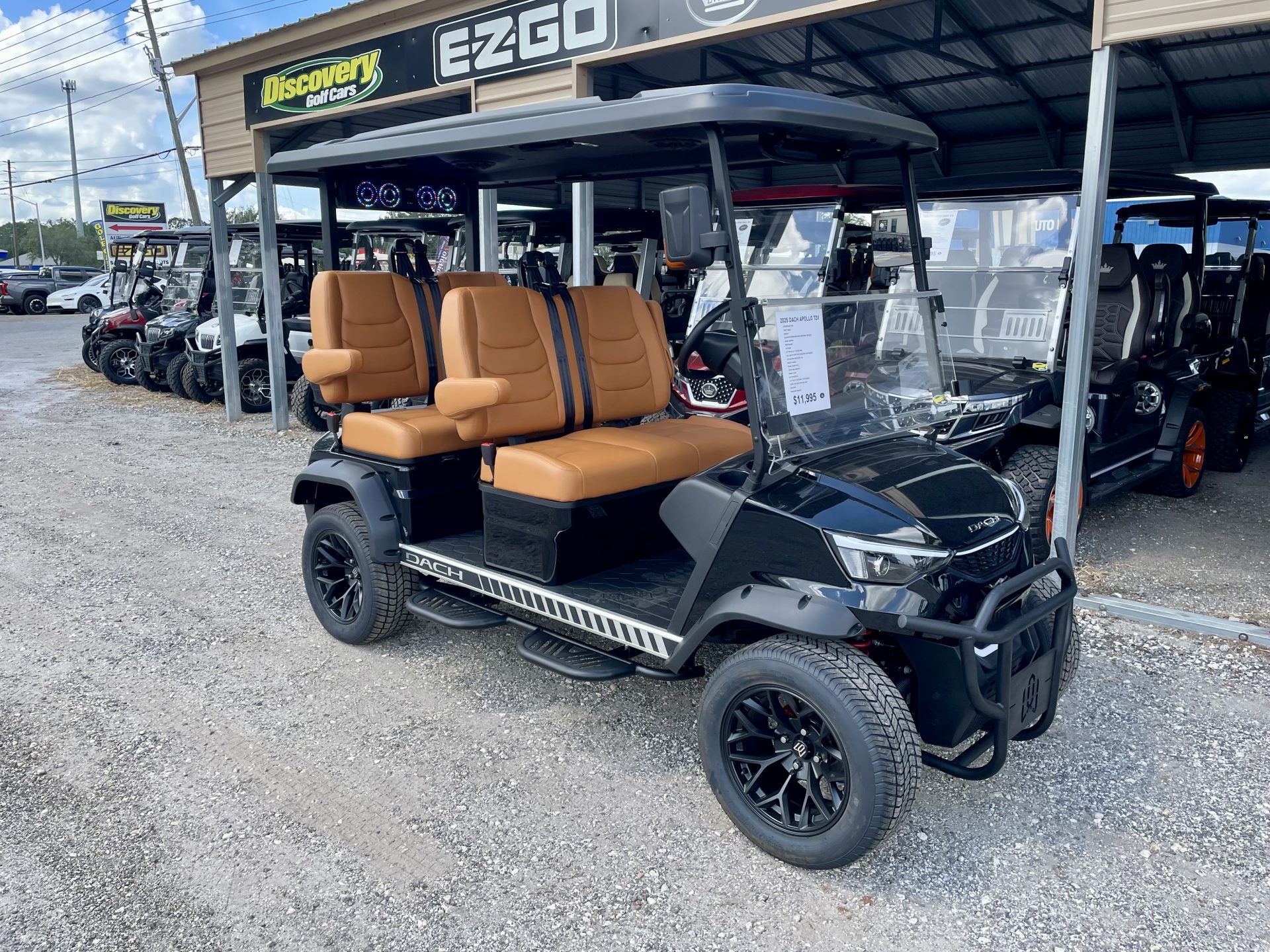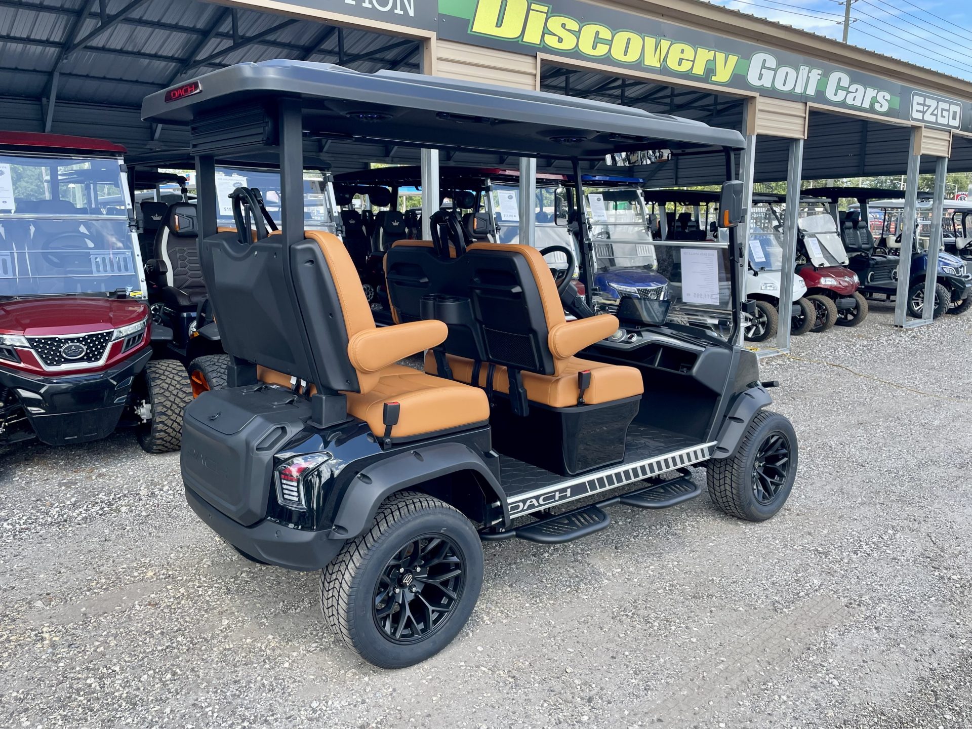Introducing the future of leisure and convenience with the all-new 2025 Dach Apollo Golf Cart. Designed for those who seek more than just a ride, the Apollo merges cutting-edge technology with sleek aesthetics, ensuring you travel in style, whether on the golf course or around the neighborhood. This brand-new Apollo model is powered by a state-of-the-art lithium battery system, offering you a smooth, quiet, and environmentally friendly ride with impressive efficiency. Say goodbye to frequent charging – with the Apollo, you’ll enjoy extended driving ranges, allowing you more time for leisure and less time worrying about power. The 2025 Apollo is crafted to comfortably seat four passengers, making it perfect for family outings or a round with friends. Its spacious interior is designed with plush seating and ample legroom, ensuring a comfortable journey for everyone on board. The attention to detail extends to its intuitive controls and easy handling, making it a joy to drive for both seasoned drivers and newcomers alike. Built to impress, the Dach Apollo features a modern, aerodynamic design that is sure to turn heads. The exterior is as durable as it is stylish, made from high-quality materials that promise longevity and resilience against the elements. Whether you’re cruising along the fairway or navigating your local community, the Apollo guarantees a smooth and stable ride, thanks to its advanced suspension and precision engineering. Safety is paramount in the Apollo, with a range of features designed to protect you and your passengers. From its robust braking system to its well-positioned lighting, this golf cart ensures peace of mind with every ride. Embrace the future of personal transport with the 2025 Dach Apollo Golf Cart. It’s more than just a vehicle; it’s your ticket to a new era of driving pleasure. Don’t miss the chance to own this masterpiece of innovation and style – the perfect blend of form and function for the modern adventurer.