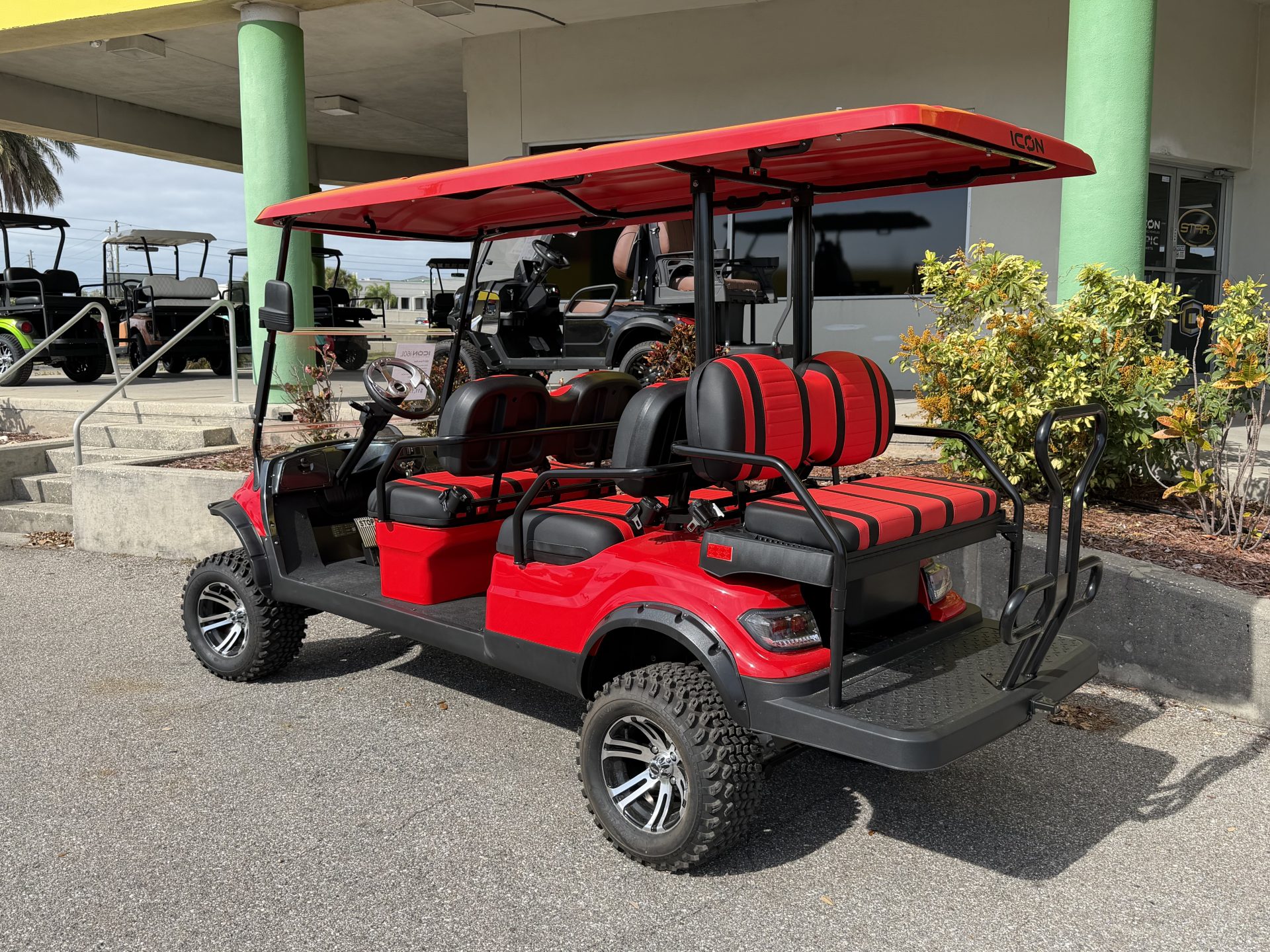 The ICON i60L is a lifted six-seater golf cart that exemplifies excellence in golf cart design, offering a blend of durability, functionality, and style that surpasses expectations of the most discerning buyer. Designed with meticulous attention to detail, the ICON i60L golf cart embodies robust performance and reliability making it suitable for a variety of uses for both residential and commercial use.